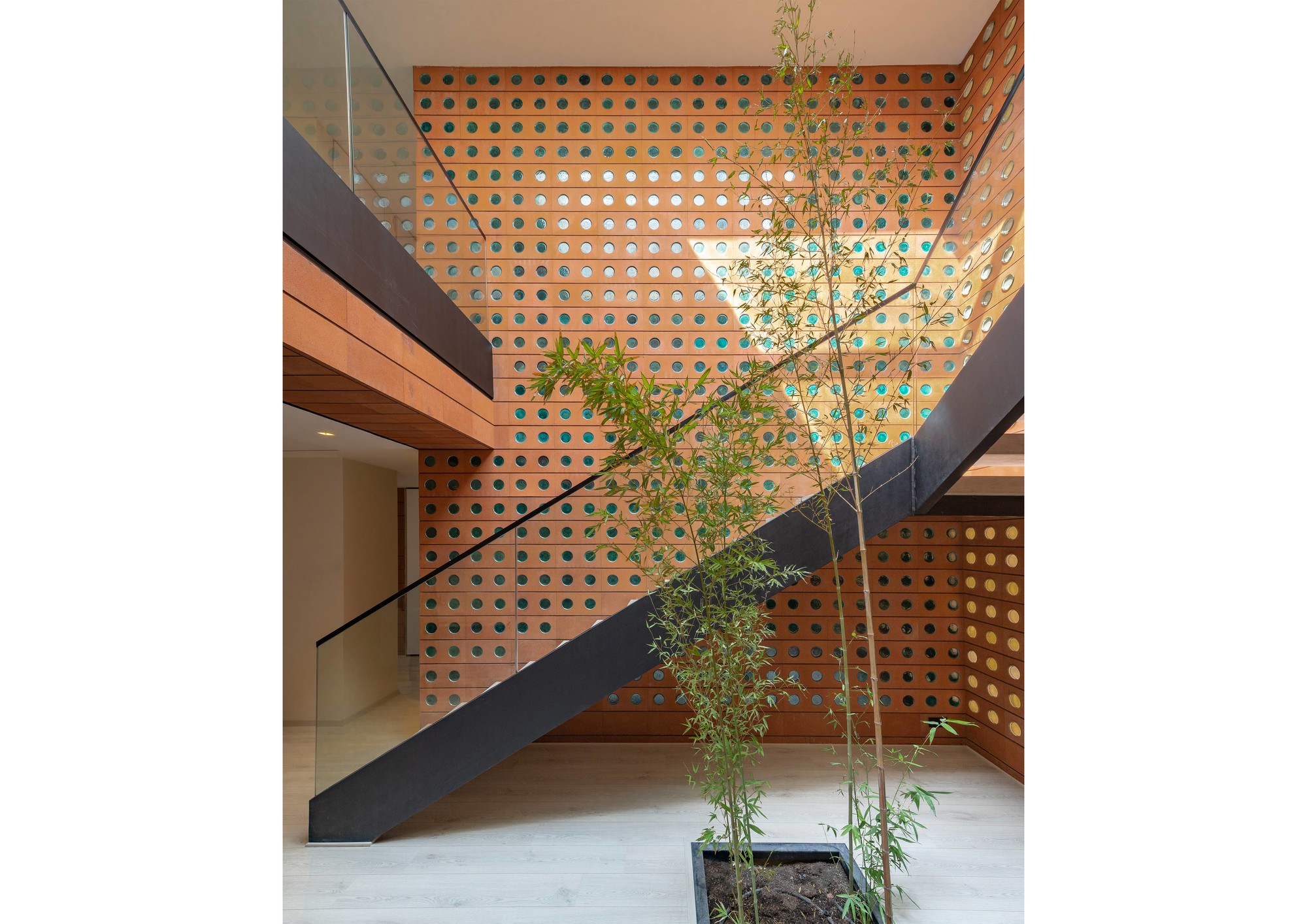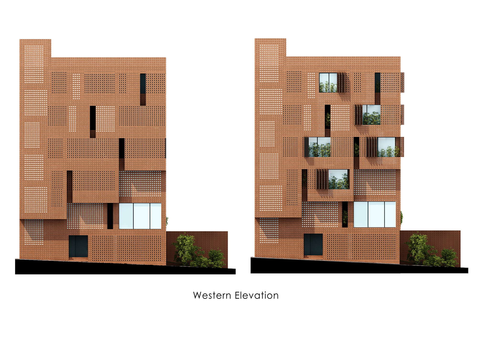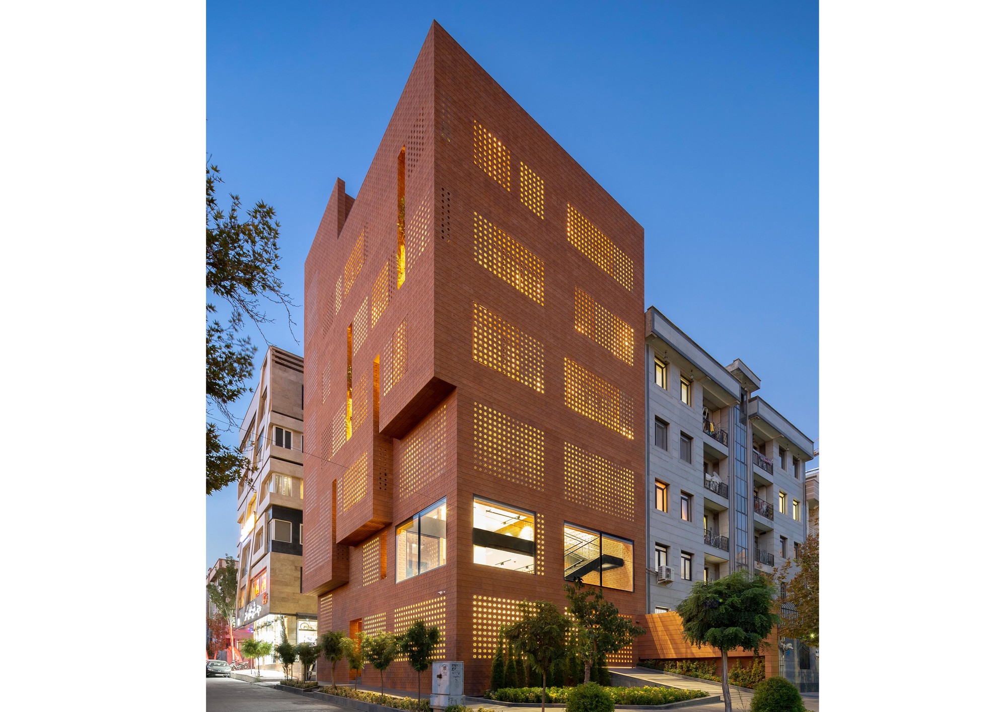 Is it possible to unify the urban scenery by minimizing the formic expression of buildings as singular objects and emphasizing on the city as a whole? Unitizing different elements of the building including walls, windows, doors, etc., as well as reducing the variety of building materials could somehow address the so called issues. The project was designed as the headquarters for Kohan Ceram Brick Manufacturing Company. Preserving the existing concrete structure, it was decided to Design a special brick (by architect) to represent the factory. Now the question is, could this well-known building material move beyond its simple role and help changing the perceptions towards a complicated building and to combine different building elements to reach a new phenomenon? How could we reduce the visual disturbance in the urban scenery by introducing weak forms as building objects? The story of Kohan Ceram building was started when a new modular creature was formed called the “Spectacled Brick”. This little guy had transparency and solidity in one piece and could see the city from within. It worked as the masonry, the finishing, and the insulation at the same time but still wanted to be more than that. The Spectacled Brick not only formed the exterior façade, but also transformed from a surface into a volume which extended into the building in the form of modular greenspaces. Replacing ordinary walls and windows, these modules defined different spaces in the building. Therefore, the interior walls were formed by the extension of the exterior walls, following the main design criteria which was to merge dual qualities. Bringing the natural lighting inside spaces in a mysterious way, the Spectacled Brick delayed the perceptions towards the building. It made the building both introverted and extroverted during day and night. It strictly banned other materials to take part in the making of the building and always kept loyal to its geometry. Penetration was the favorite notion for the Spectacled Brick. Making use of its semi-transparent nature, it merged the exterior with the interior to fade the boundary between the two. The spectacled brick was aware of the ventilation and light exposure benefits caused by the penetration of exterior to interior and used this technique to organize spaces inside the building. The spectacled brick integrated building qualities such as interior and exterior, introversion and extroversion, façade and space, transparency and solidity, natural and artificial lighting, to create a new phenomenon which not only carries features form both components, but also introduces new values to the system. Therefore, design challenges were resolved by merging these dual components into unique elements. It also used this homogeneity to address the programmatic requirement of the project which included both commercial and residential spaces. It tried to expand the commercial aspect of the brick showroom to the exterior and eventually to the city. Therefore, the transitional role of the building as a complex of spaces in the building scale and a commercial object in the urban scale was formed. Net Zero Operation CarbonRadiation and solar heat gain is controlled by a passive system, using operable brick louvers. Users can control daylighting and temperature by adjusting the shades. With a 60cm gap from the first layer, the second layer of the façade contains the main window openings for natural ventilation. This system significantly reduces building energy demand. The lighting system in this building is equipped with motion sensors. Moreover, the cooling/ heating system consists of ceiling fan coils with separate operational systems in each zone, equipped with sensors detecting the human presence to turn on or off. All of these systems have a great impact on reducing energy consumption in the building. Good Health and WellbeingIn some parts of the building the façade has been extended to the interior spaces, forming deep voids (up to 5m) inside the spaces to bring in natural light and ventilation. The air entering these voids gets filtered by the vegetation in the flower boxes along the void length to become fresh and less polluted. Approximately 70 m2 of total floor area of the building has been dedicated to greenspaces. These greenspaces significantly affect the quality of life by filtering and moistening the air in the dry and polluted climate of Tehran. On the south and west facades where sunlight exposure is higher than normal, the brick-glass modules capture the excess sun energy and allows an optimized amount of light and heat to enter the building. Statistics show that 67% of the total building area is within the Useful Daylight illuminance (UDI) range. The brick used in this project is recyclable, has minimum effect on the ecosystem, and is cheaper to maintain in the climatic condition of Tehran. Some of the interior spaces have been separated by glass partitions to create visual connection and to allow better sunlight penetration.