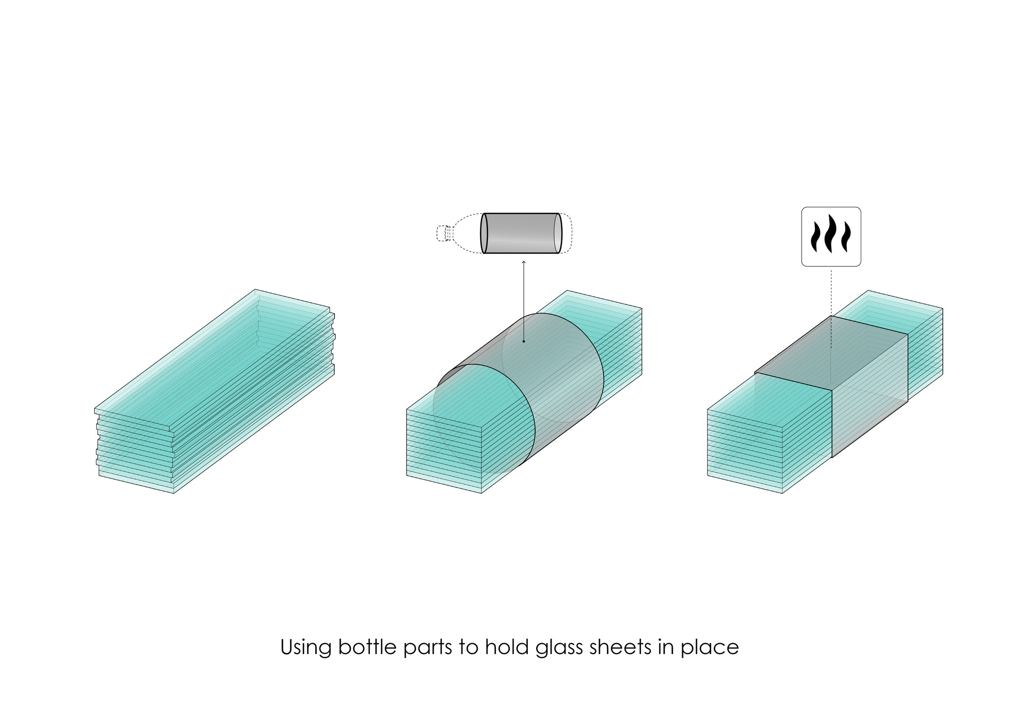 Karaj Physiotherapy Clinique is located in the developing part of Karaj city, in a neighborhood where a lot of the residential fabric is being replaced by office and commercial projects. the program of the project was to create a physiotherapy Clinique and related services in different floors of a small piece of land. A semi-transparent façade was designed which extends to the interior spaces, creating voids and greenspaces. The material palette of the project consists of recycled glass and stones from the cut stones of the factories, to form a semi-transparent façade. Recycled plastic bottles were used in the procedure of connecting the pieces of glasses together. The plastic bottles were heated to connect the glass pieces together. Making use of these recycled materials, the façade of the project is now semi-transparent, allowing optimum sun light exposure, while minimizing overlook to the interior spaces Considering the small scale of the land, a vertical core was not feasible to consider. Therefore, it was decided to create a homogenous circulation path on the façade of the building in the form of a transparent staircase. This technique allowed for more usable interior spaces inside the building. Moreover, the movement of people in the circulation path creates a dynamic façade in the urban scenery. A void was created to the underground level outside the main entrance of the building which not only provides sunlight to the underground level, but also creates boundary and separation between the building and the urban site. This void includes greenspaces which are then replicated on the façade.