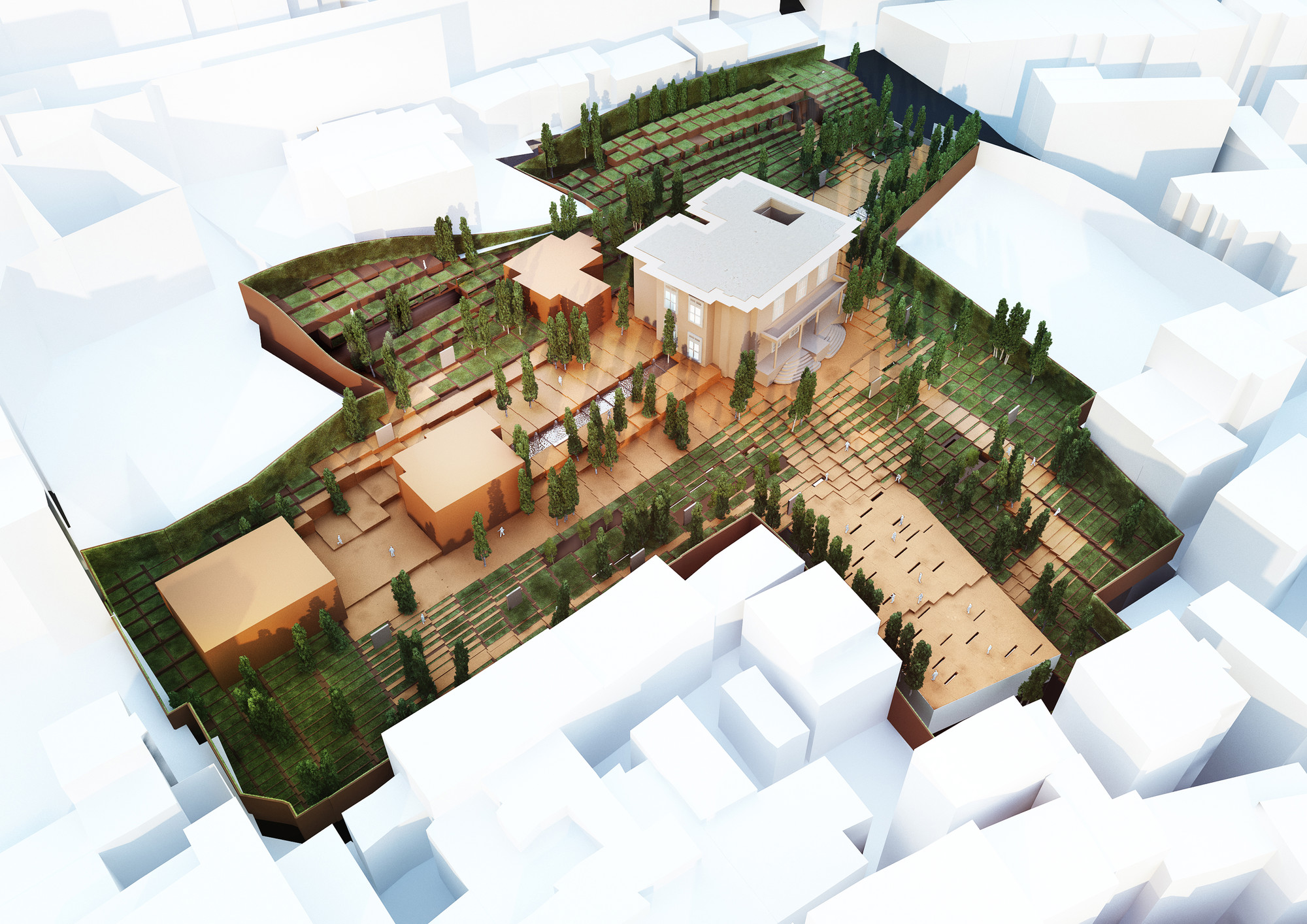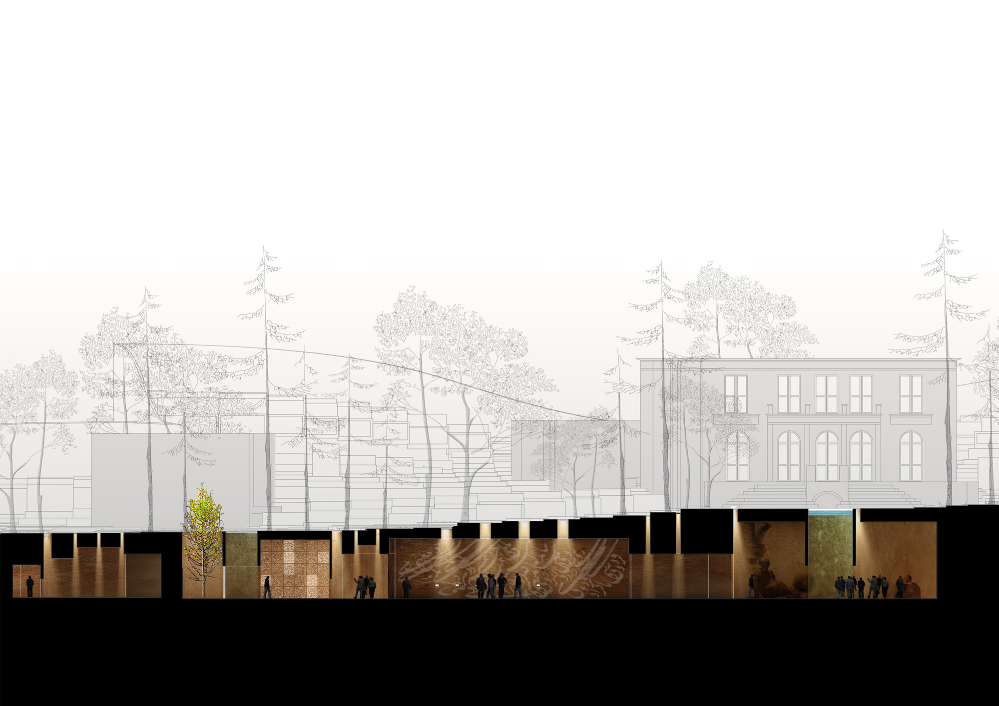 Located in Jamaran district of Tehran, Khosro-Shahi Garden is next to the residence of Imam Khomeini, the leader of the Islamic Revolution of Iran. The Islamic Revolution had various political, social and cultural aspects affecting people’s attitudes and lifestyles. Revolution in its general meaning is “a movement to put an old order down and to create a new one based on the public participation”. A nation, on the other hand, is a group of people with a network of internal connections in three categories: national, social, and ideological. The convergence of this three is the essence of the great social evolutions forming a revolution. Social improvements require new ideologies and principles and this happens when conflicts of ideas and discourses exist. The aim of this project was to provide a platform where people could gather and establish productive dialogs. Therefore, the garden is called the “National Reasoning Centre”. Anyone could be the initiator of an idea and this centre values the role of each citizen in improving the cultural identity of a nation.