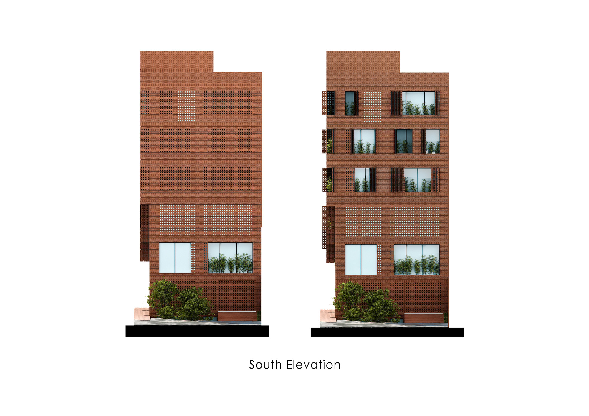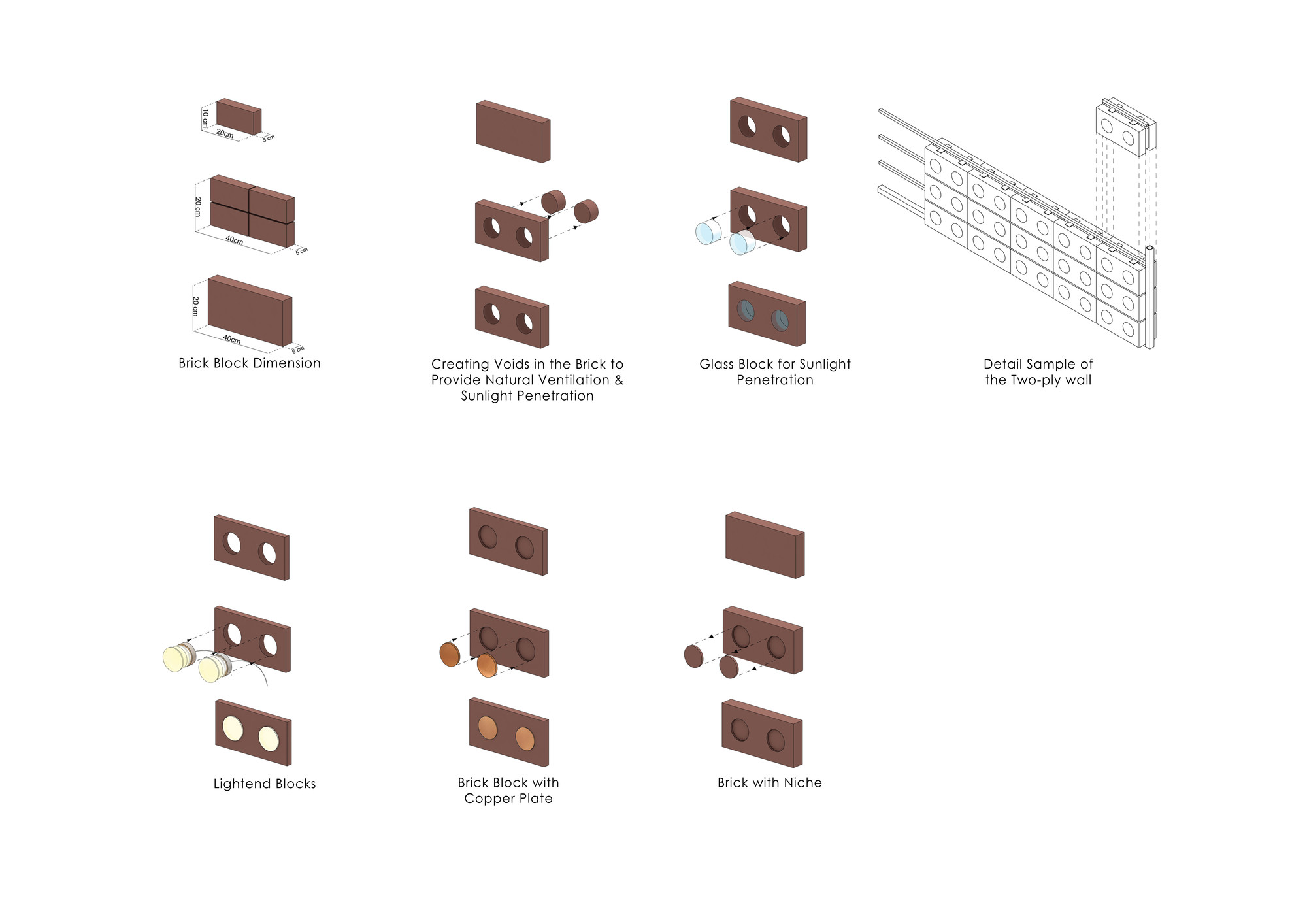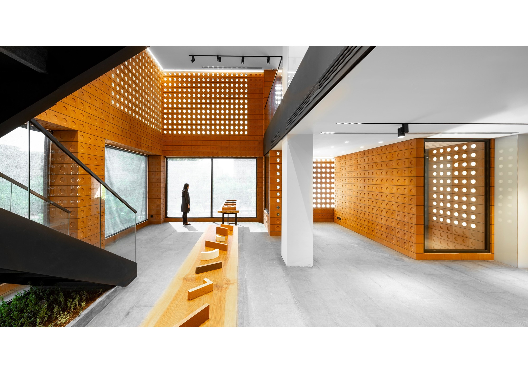 Is it possible to unify the urban scenery by minimizing the formic expression of buildings as singular objects and emphasizing on the city as a whole? Unitizing different elements of the building including walls, windows, doors, etc., as well as reducing the variety of building materials could somehow address the so called issues. The project was designed as the headquarters for Kohan Ceram Brick Manufacturing Company. Preserving the existing concrete structure, it was decided to Design a special brick (by architect) to represent the factory. Now the question is, could this well-known building material move beyond its simple role and help changing the perceptions towards a complicated building and to combine different building elements to reach a new phenomenon? How could we reduce the visual disturbance in the urban scenery by introducing weak forms as building objects? The story of Kohan Ceram building was started when a new modular creature was formed called the “Spectacled Brick”. This little guy had transparency and solidity in one piece and could see the city from within. It worked as the masonry, the finishing, and the insulation at the same time but still wanted to be more than that. The Spectacled Brick not only formed the exterior façade, but also transformed from a surface into a volume which extended into the building in the form of modular greenspaces. Replacing ordinary walls and windows, these modules defined different spaces in the building. Therefore, the interior walls were formed by the extension of the exterior walls, following the main design criteria which was to merge dual qualities. Bringing the natural lighting inside spaces in a mysterious way, the Spectacled Brick delayed the perceptions towards the building. It made the building both introverted and extroverted during day and night. It strictly banned other materials to take part in the making of the building and always kept loyal to its geometry. Penetration was the favorite notion for the Spectacled Brick. Making use of its semi-transparent nature, it merged the exterior with the interior to fade the boundary between the two. The spectacled brick was aware of the ventilation and light exposure benefits caused by the penetration of exterior to interior and used this technique to organize spaces inside the building. The spectacled brick integrated building qualities such as interior and exterior, introversion and extroversion, façade and space, transparency and solidity, natural and artificial lighting, to create a new phenomenon which not only carries features form both components, but also introduces new values to the system. Therefore, design challenges were resolved by merging these dual components into unique elements. It also used this homogeneity to address the programmatic requirement of the project which included both commercial and residential spaces. It tried to expand the commercial aspect of the brick showroom to the exterior and eventually to the city. Therefore, the transitional role of the building as a complex of spaces in the building scale and a commercial object in the urban scale was formed. Net Zero Operation CarbonRadiation and solar heat gain is controlled by a passive system, using operable brick louvers. Users can control daylighting and temperature by adjusting the shades. With a 60cm gap from the first layer, the second layer of the façade contains the main window openings for natural ventilation. This system significantly reduces building energy demand. The lighting system in this building is equipped with motion sensors. Moreover, the cooling/ heating system consists of ceiling fan coils with separate operational systems in each zone, equipped with sensors detecting the human presence to turn on or off. All of these systems have a great impact on reducing energy consumption in the building. Good Health and WellbeingIn some parts of the building the façade has been extended to the interior spaces, forming deep voids (up to 5m) inside the spaces to bring in natural light and ventilation. The air entering these voids gets filtered by the vegetation in the flower boxes along the void length to become fresh and less polluted. Approximately 70 m2 of total floor area of the building has been dedicated to greenspaces. These greenspaces significantly affect the quality of life by filtering and moistening the air in the dry and polluted climate of Tehran. On the south and west facades where sunlight exposure is higher than normal, the brick-glass modules capture the excess sun energy and allows an optimized amount of light and heat to enter the building. Statistics show that 67% of the total building area is within the Useful Daylight illuminance (UDI) range. The brick used in this project is recyclable, has minimum effect on the ecosystem, and is cheaper to maintain in the climatic condition of Tehran. Some of the interior spaces have been separated by glass partitions to create visual connection and to allow better sunlight penetration.