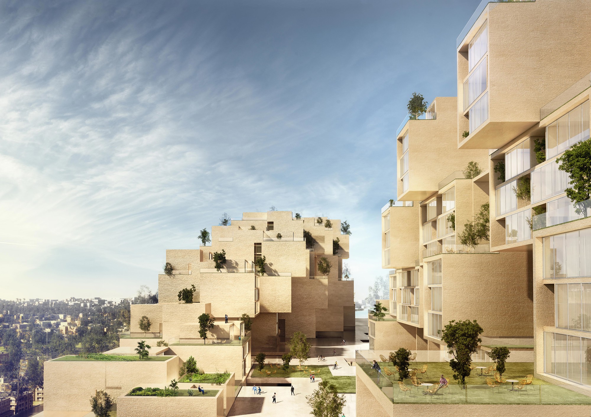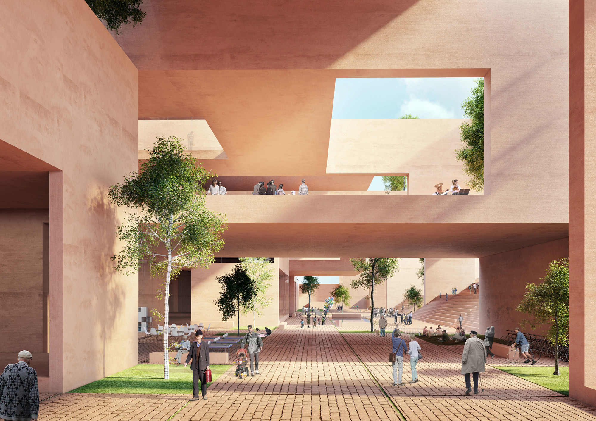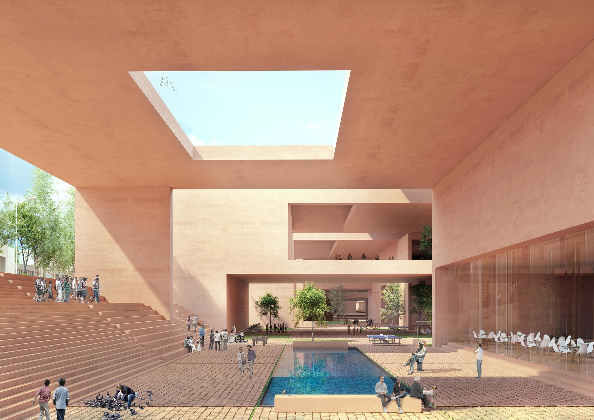 Alongside rural agricultural fields of Tabriz, Ayman Residential Complex covers 300,000 m2 of the city’s deteriorated urban fabric. Considering the adjacent deteriorated fabric, the main design intention was to improve the socio-economic quality of the entire neighborhood. The majority of the residents in the area are the farmers working on the adjacent agricultural fields. Considering the context and the user group as the main design factor, it was decided to create an “organic neighborhood” for the city. In the urban scale, the project is divided into two parts, the public zone (lower levels) and the private residential zone (Upper levels). The lower levels become a social platform, connecting the deteriorated fabric to the farmlands. This platform is provided to the neighbors to showcase their organic products as well as homemade handcrafts. This platform is flexible in terms of function and could host activities ranging from farmers markets to socio-cultural events. This opportunity not only boosts the economic development of the neighborhood but also adds value to the farmlands. The residential fabric on the upper floors is independent from the public zone. In addition to the main private courtyard, the residential levels include common open spaces which are private to each cluster of residential units. Adapting to the traditional culture of Tabriz, each residential unit also includes a roofed balcony. The contiguity of the public platform and the residential neighborhood provides a source of income for the residents of the deteriorated area and allows lower income families to afford a residence in the complex.