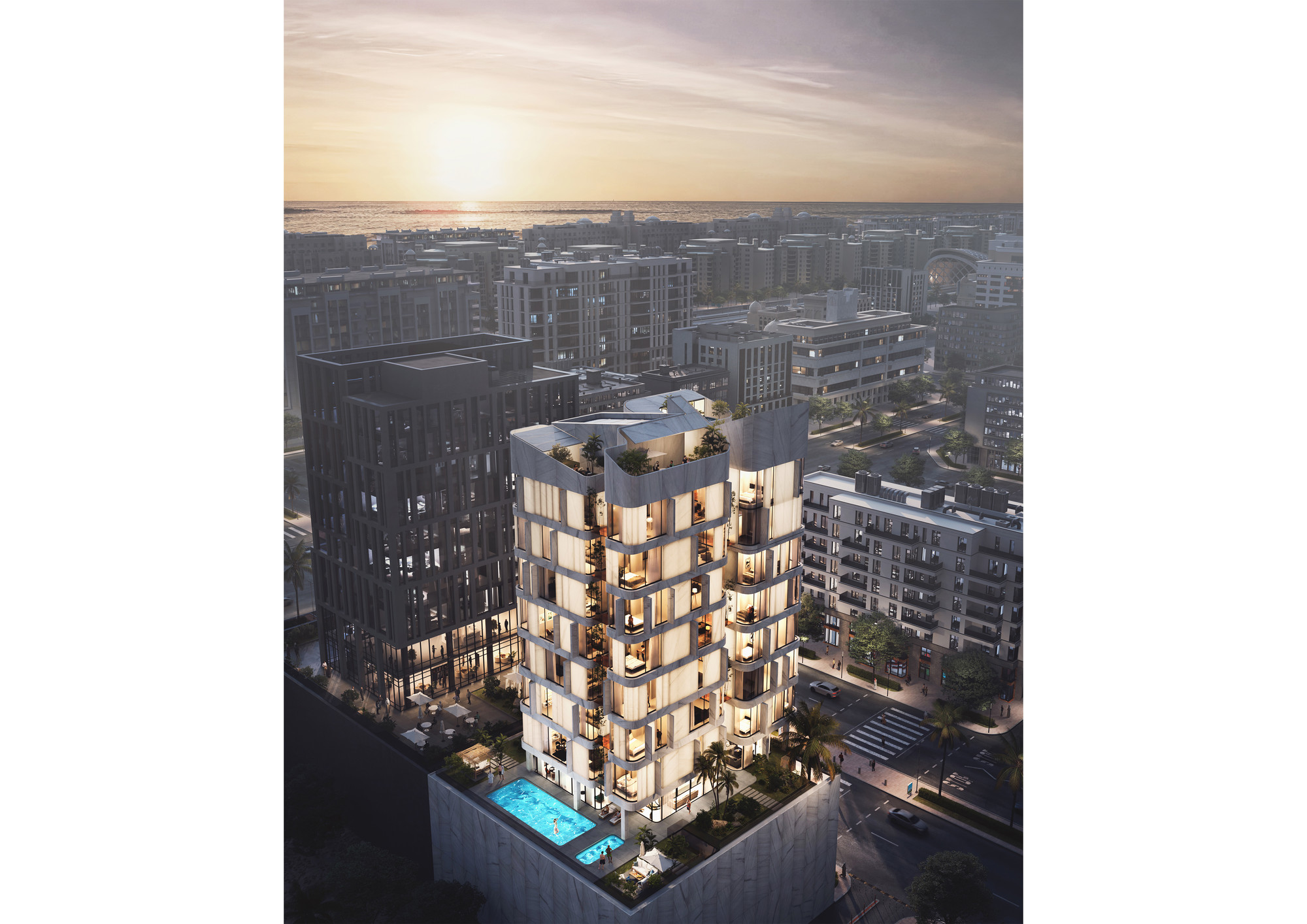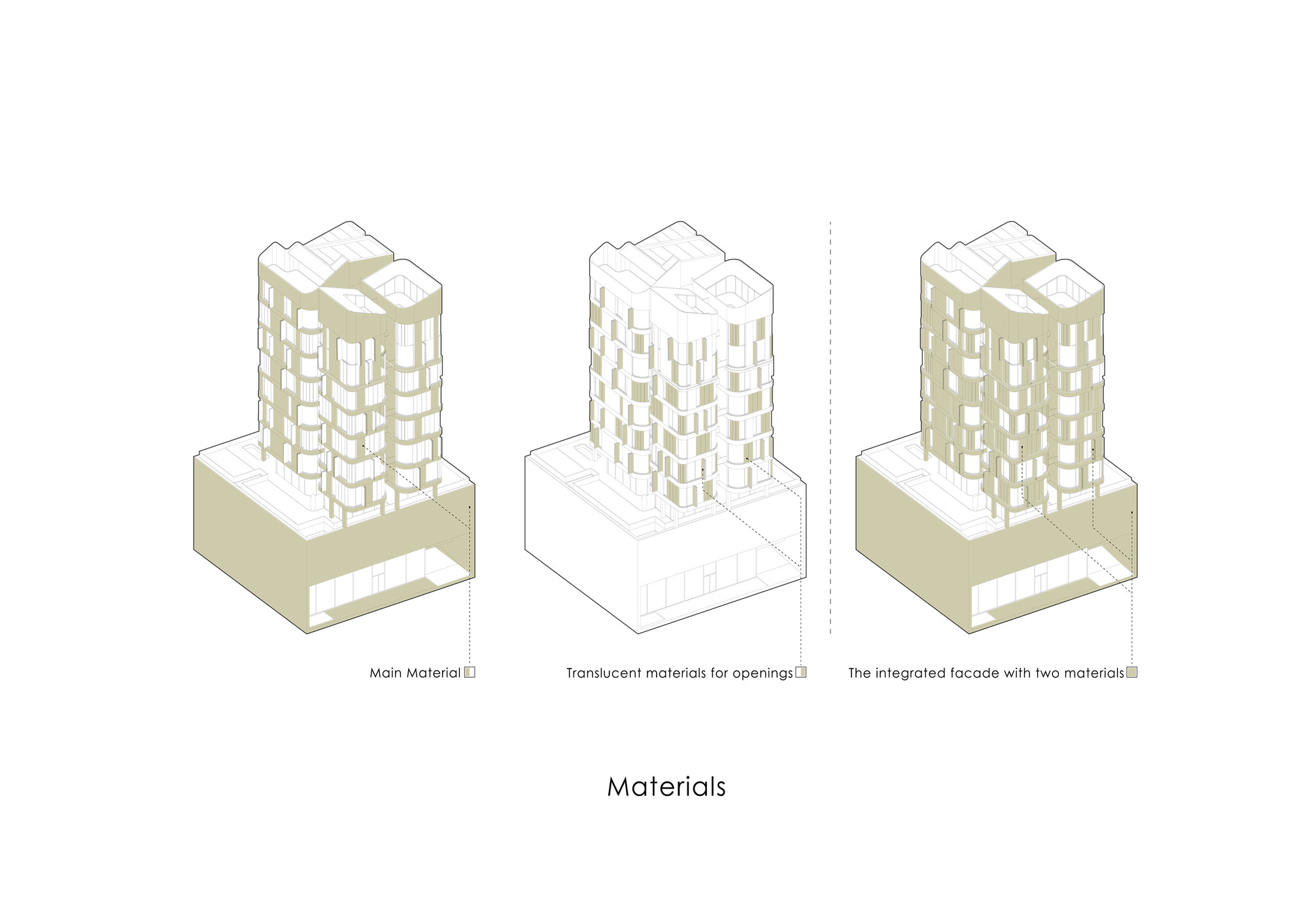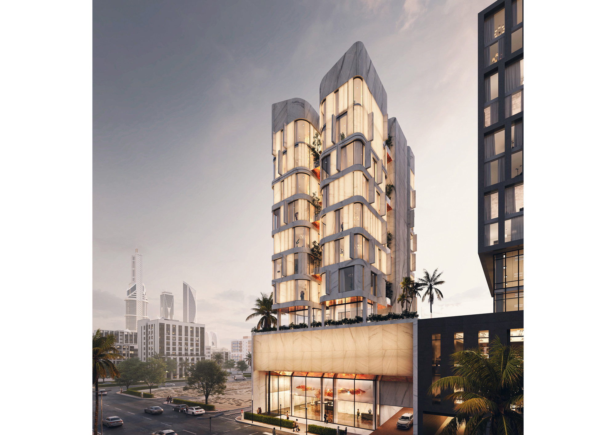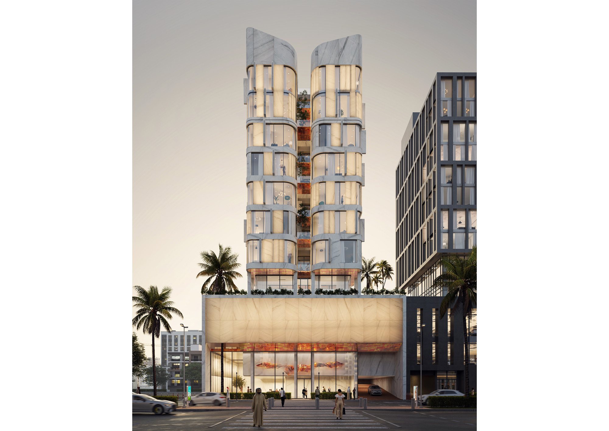 Residential Apartment Project in Jumeirah Garden This project aims to align with Dubai’s geography by offering a model of small-scale apartments combined with high-quality semi-open and open living spaces. The design integrates compact residential layouts with open spaces, responding to local climatic and urban conditions, and Dubai’s zoning regulations. Key Design Strategies: • Semi-Open Spaces: Shared walls between units are replaced with semi-open spaces, providing each unit with an independent semi-open terrace. These shaded terraces connect to the living areas via large openings, enhancing indoor-outdoor integration. • Shaded and Semi-Open Living: These spaces improve residential quality, especially in small-scale apartments, offering natural ventilation, indirect lighting, and enhanced livability. • Unit Geometry: Each residential unit is divided into four distinct sections, with semi-open terraces breaking shared boundaries. These voids allow indirect light into corridors and facilitate cross-ventilation when needed. • Corridor Lighting and Ventilation: This spatial organization not only enhances unit quality but also improves natural lighting and airflow in communal hallways. Ground Floor Design: The ground floor includes a lobby and community hall. Skylights in the podium roof illuminate parking areas and lobby spaces, while circulation design (e.g., parking ramps) allows for a double-height lobby, creating an open and inviting atmosphere. Architectural Form and Materials: • Curved Edges: Each residential unit is treated as an independent volume with curved corners, maximizing views of Sheikh Zayed Road and the coastal front. • Double Layer Facades: The façade employs materials balancing transparency and solidity. Thin marble laminated with glass creates semi-transparent panels, functioning as thermal and light regulators. These panels provide soft lighting when closed and can open (sliding or accordion-style) for clear city views. At night, the semi-transparent façade glows softly. • Material Flexibility: Panels can be operated manually or via smart systems. Cost-effective alternatives like translucent concrete (a blend of concrete and glass) can also be implemented if budget constraints arise. Amenities and Layout: • Podium Landscape: The rooftop of the parking structure is landscaped, featuring an outdoor pool, jacuzzi, gym, café, and changing rooms. • Villa and Duplex Units: The northern side includes a private villa with a dedicated courtyard, while the 7th and 8th floors feature two duplex units. These duplexes include private rooftop courtyards with jacuzzis, ensuring complete privacy. Internal elevators connect these units directly to the rooftop. • Residential Units: The project comprises 24 independent apartments, two duplexes, and one villa with a private courtyard. This project redefines compact living by integrating semi-open spaces, innovative materials, and high-quality amenities, creating a unique residential experience tailored to Dubai’s environment and urban lifestyle.